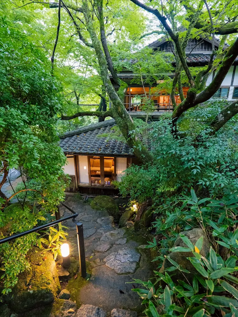 伝統的な佇まいの門構えが印象的で、渓流の音を聞きながら過ごす和室は居心地が抜群でした😊