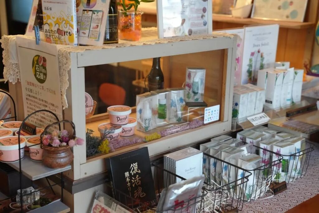 日常の喧騒を忘れてくつろげる空間には、全国から集まった安心で安全な食べ物がたくさん並んでいました。